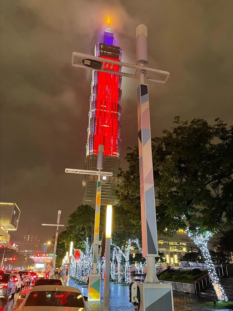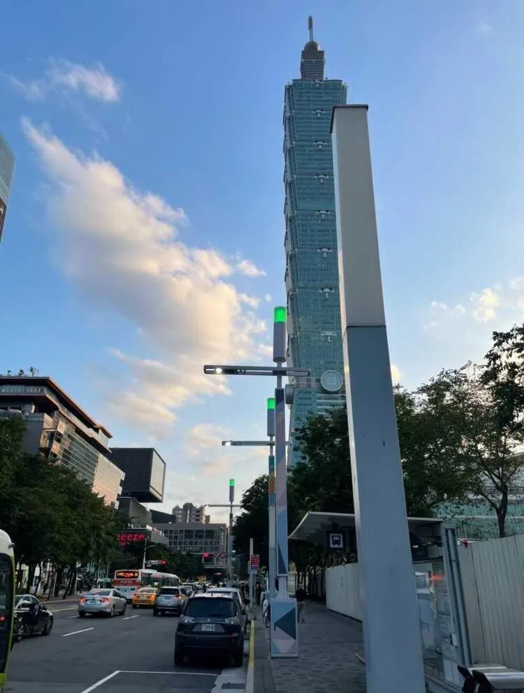 ●5G smart co-pole and EOI lamps are set up at the entrance of Taipei City Government